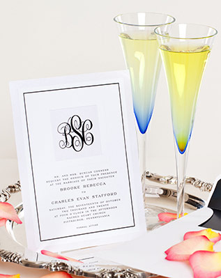 Every invitation is printed in our factory under the watchful eye of a family member and hand assembled with the highest level of care and craftsmanship. All of our invitations and announcements are hand crafted by our dedicated and talented group of employees and we guarantee your satisfaction with our work. Thermography is our standard printing process, where each invitation goes through a process that “raises” the ink on the paper which gives it the same look and feel as engraving