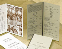 Invitations by Pioneer are designed for the wonderful variety of life's special occasions and our accessories will always enhance the invitation package. Wedding programs, wedding menus, place cards, table cards, and thank you notes are all designed to match your custom invitation. Our exclusive laser cut table cards, place cards, and menus provide that elegant touch to enhance your table settings. When your custom invitation first announces your special event celebration day, Pioneer's accessories will add that unique, elegant, and chic touch that show your guests that you have thought about every detail in planning your special occasion.