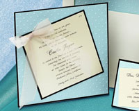 All of Pioneer's invitation designs can be customized or you can present a totally unique invitation design that we can produce as we have done for many high end clients throughout the country. Manufactured in our own factory, we produce specially designed laser cut invitations, thermographed invitations, embossed invitations, custom die cut invitations, and foil stamped invitations as well as designing our own copyrighted paper to match your particular theme.